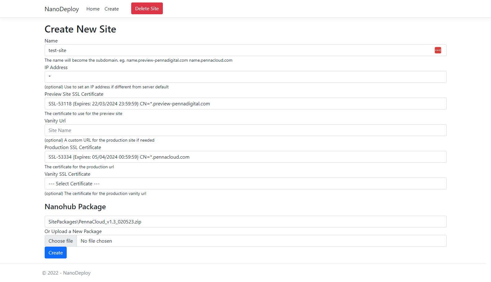 The name will become the subdomain. eg. test-v1.preview-pennadigital.com and test-v1.pennacloud.com